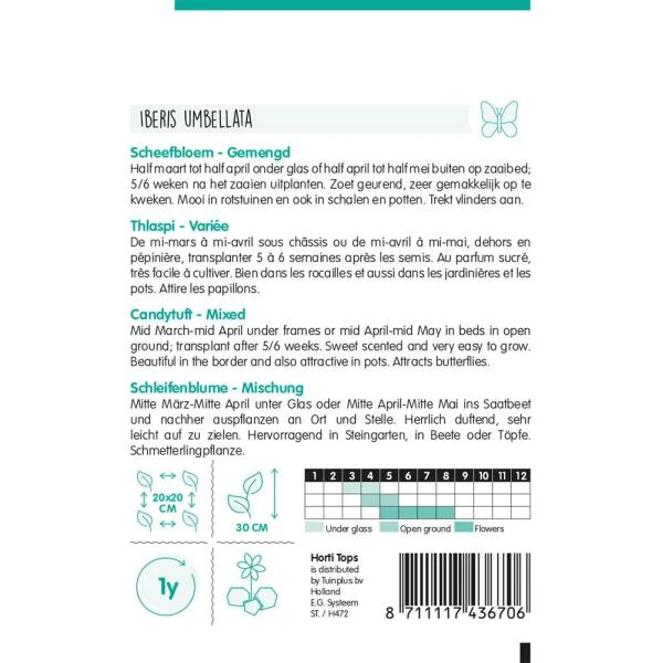 Iberis umbellata heeft zoet geurende bloemen die heel aantrekkelijk zijn voor vlinder. Staat ook mooi in de rotstuin.